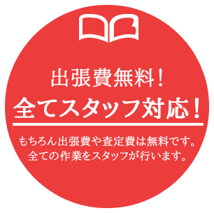 当社スタッフがご自宅へ訪問。出張費は無料!本の内容にもよりますが、約200冊からうけたまわります。査定から梱包、運び出しまでスタッフがお任せ対応。ご依頼主の労力はご不要です。さらに大量でも対応いたします。